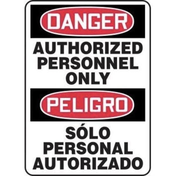 Accuform Danger Sign, Bilingual, Header DANGERPELIGRO, Legend AUTHORIZED PERSONNEL ONLYSOLO PERSONAL AUTORIZADO, 004 in Aluminum, Hole Mounting, 20 in Height, 14 in WidthSafety Signs identify and indicate potential, type, and degree of hazards that may lead to accidental injury or property damage Aluminum signs withstand washdowns, harsh elements, abusive conditions, and feature good chemical, abrasion, and impact resistance Aluminum is excellent for indoor and outdoor usage, making it ideal for a wide variety of industrialstrength applications
