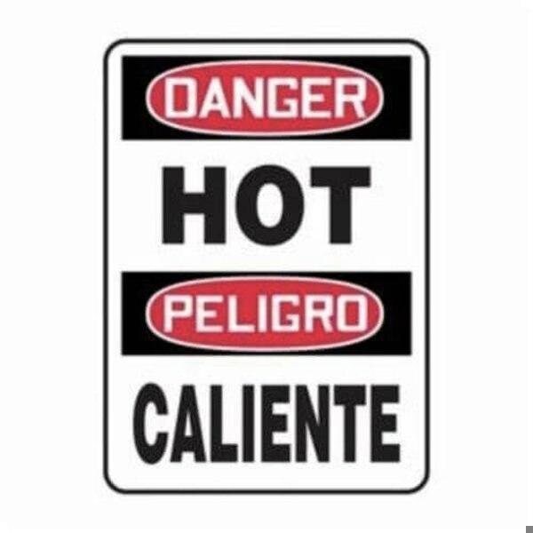 Accuform Danger Sign, Bilingual, Header DANGER, Text Legend, Legend DANGER HOTPELIGRO CALIENTE, 0055 in Plastic, 20 in Height, 14 in WidthSafety Signs identify and indicate potential, type, and degree of hazards that may lead to accidental injury or property damage Plastic signs are semiflexible, made with 50 recycled content, and ideal for indoor and shortterm, sheltered outdoor environments Plastic signs feature good impact resistance, UV inhibitors, and enough flex to mount on slightly curved areas