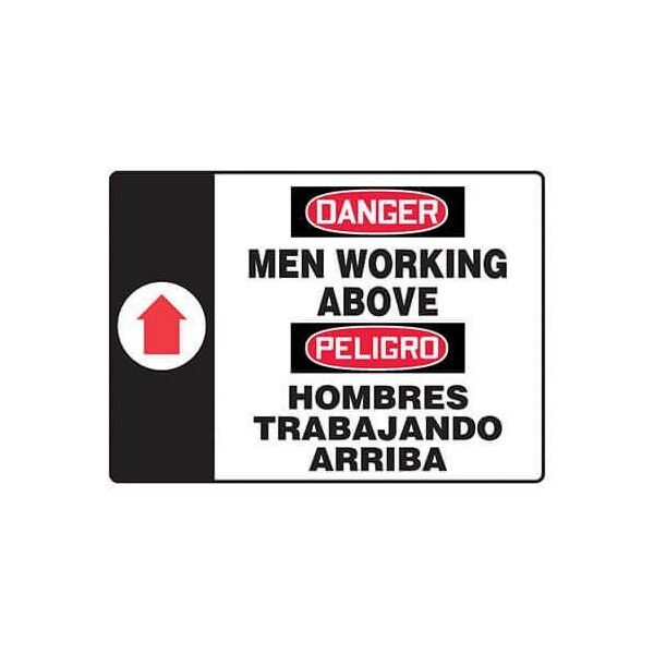 Accuform Danger Sign, DANGER Header, TextSymbol Legend, DANGER MEN WORKING ABOVEPELIGRO HOMBRES TRABAJANDO ARRIBA ARROW UP Legend, 6 mil Adhesive DuraVinyl, 20 in Height, 14 in WidthSafety Signs identify and indicate potential, type and degree of hazards that may lead to accidental injury or property damage Duallayered Adhesive DuraVinyl delivers exceptional flexibility and performance, outperforming standard vinyl Printed image is protected by a highgloss UV protective coating Adhesive DuraVinyl is durable, even in the toughest indoor and outdoor conditions and adheres to most smooth, curved and irregular surfaces