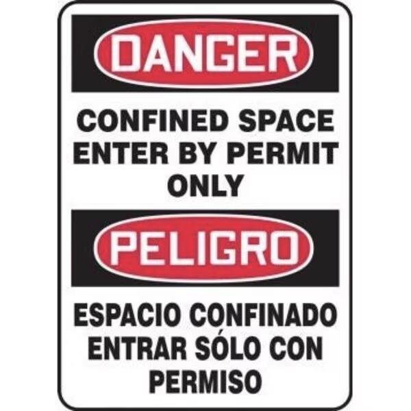 Accuform Danger Sign, Header DANGER, Text Legend, Legend DANGER CONFINED SPACE ENTER BY PERMIT ONLYPELIGRO ESPACIO CERRADO ENTRADA SOLO CON PERMISO, 6 mil Adhesive DuraVinyl, 14 in Height, 10 in WidthSafety Signs identify and indicate potential, type, and degree of hazards that may lead to accidental injury or property damage Duallayered Adhesive DuraVinyl delivers exceptional flexibility and performance, outperforming standard vinyl Printed image is protected by a highgloss UV protective coating Adhesive DuraVinyl is durable, even in the toughest indoor and outdoor conditions, and adheres to most smooth, curved, and irregular surfaces