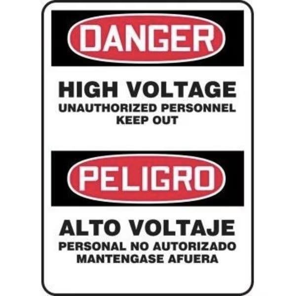 Accuform Danger Sign, Bilingual, Header DANGERPELIGRO, Legend HIGH VOLTAGE UNAUTHORIZED PERSONNEL KEEP OUTALTO VOLTAJE PERSONAL NO AUTORIZADO MANTENGASE AFUERA, 6 mil Adhesive DuraVinyl, Acrylic Adhesive Mounting, 14 in Height, 10 in WidthSafety Signs identify and indicate potential, type, and degree of hazards that may lead to accidental injury or property damage Duallayered Adhesive DuraVinyl delivers exceptional flexibility and performance, outperforming standard vinyl Printed image is protected by a highgloss UV protective coating Adhesive DuraVinyl is durable, even in the toughest indoor and outdoor conditions, and adheres to most smooth, curved, and irregular surfaces