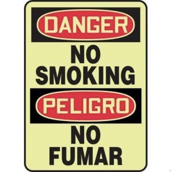 Accuform Danger Sign, Bilingual, DANGERPELIGRO Header, TextSymbol Legend, NO SMOKINGPROHIBIDO FUMAR GRAPHIC Legend, 6 mil Adhesive DuraVinyl, 10 in Height, 14 in WidthSafety Signs identify and indicate potential, type and degree of hazards that may lead to accidental injury or property damage Duallayered Adhesive DuraVinyl delivers exceptional flexibility and performance, outperforming standard vinyl Printed image is protected by a highgloss UV protective coating Adhesive DuraVinyl is durable, even in the toughest indoor and outdoor conditions and adheres to most smooth, curved and irregular surfaces