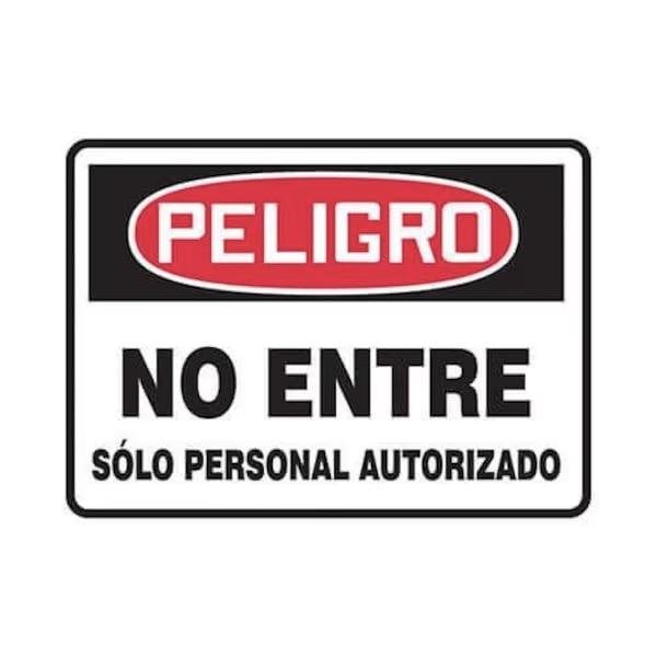 Accuform Danger Sign, Header PELIGRO, Text Legend, Legend NO ENTRE SOLO PERSONAL AUTORIZADO, 6 mil Adhesive DuraVinyl, Acrylic Adhesive Mounting, 7 in Height, 10 in WidthSafety Signs identify and indicate potential, type and degree of hazards that may lead to accidental injury or property damage Duallayered Adhesive DuraVinyl delivers exceptional flexibility and performance, outperforming standard vinyl Printed image is protected by a highgloss UV protective coating Adhesive DuraVinyl is durable, even in the toughest indoor and outdoor conditions and adheres to most smooth, curved and irregular surfaces
