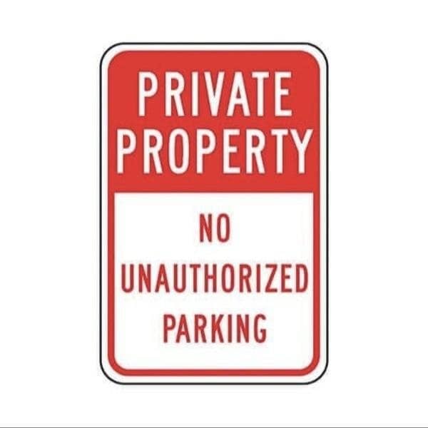 Accuform Designated Parking Sign, Text Legend, Legend PRIVATE PROPERTYNO UNAUTHORIZED PARKING, 008 in Aluminum, PostFence Mounting, 18 in Height, 12 in WidthTraffic signs safely direct and regulate the flow of vehicles and pedestrians in and around parking areas, dock areas and roadways Keep driveways, throughways and curbs free of vehicles and direct to designated parking locations with proper signs EngineerGrade Prismatic Traffic Signs are made of durable 0080 thick Aluminum that will not rust Microprismatic retroreflective sheeting provides added visibility in lowlight and nighttime conditions Signs are printed with UVresistant inks that prevent fading during longterm outdoor exposure and are predrilled with post mount holes
