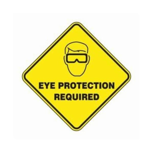Accuform Diamond Floor Sign, Series SlipGard, NO Header, TextSymbol Legend, EYE PROTECTION REQUIRED Legend, NonSlip Adhesive Vinyl, 17 in Height, Black on Yellow LegendBackground Mark bold graphics and messages on your floors and pathways with nonslip floor signs SelfAdhesive vinyl signs are 020 in thick, subsurface printed, and Over laminated by a protective layer This layer is a nonslip vinyl surface that is pebbletextured for added durability to withstand heavy pedestrian traffic SlipGard Floor Signs have a strong, permanent Acrylic Adhesive back with peeloff liner which adheres firmly to smooth, clean, dry surfaces