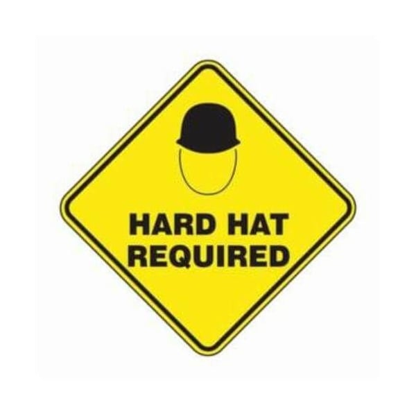 Accuform Diamond Floor Sign, Series SlipGard, Header NO Header, Legend HARD HAT REQUIRED, NonSlip Adhesive Vinyl, 17 in Height, Black on Yellow LegendBackground Mark bold graphics and messages on your floors and pathways with nonslip floor signs SelfAdhesive vinyl signs are 020 in thick, subsurface printed, and Over laminated by a protective layer This layer is a nonslip vinyl surface that is pebbletextured for added durability to withstand heavy pedestrian traffic SlipGard Floor Signs have a strong, permanent Acrylic Adhesive back with peeloff liner which adheres firmly to smooth, clean, dry surfaces