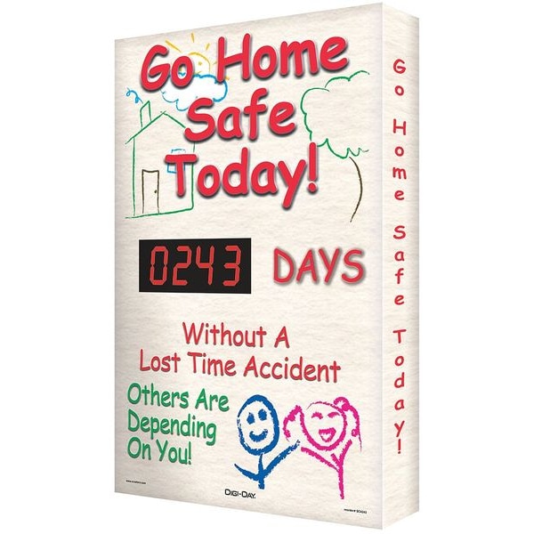 Electronic Safety Scoreboard, Sign Legend Go Home Safe Today! ___ Days Without A Lost Time Accident Others Are Depending Upon You, English, Height 28 in, Width 20 in, Vertical Rectangle, Background Color White, Background Graphic Family, Number of Displays 1, Display Format Number of Days