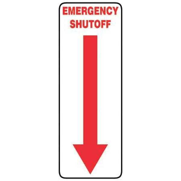 Emergency Shut-Off Sign, Sign Subject Matter Facility, Height 14 in, Width 5 in, Sign Material Vinyl, Sign Mounting Style Adhesive Surface, Header No Header, Legend Emergency Shutoff, Printed Language English, Sign Shape Rectangle