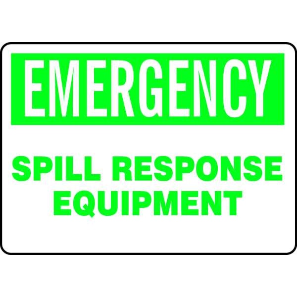Spill Control Sign, Sign Subject Matter Spill Control, Height 10 In., Width 14 In., Sign Material Vinyl, Sign Mounting Style Adhesive Surface, Header No Header, Legend Emergency Spill Response Equipment, Printed Language English, Sign Shape Rectangle