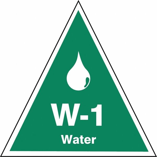 Energy Source ID Tag, Material Vinyl, Legend W-1 Water, Height 2 1/2 in, Width 2 1/2 in, Header No Header, Legend Color White, Background Color Green, Legend Style Symbol and Text, Write on Surface No