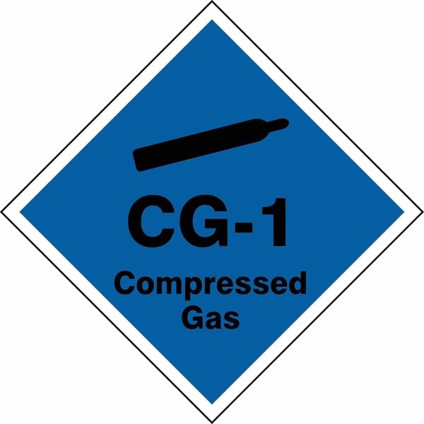 Energy Source ID Tag, Material Vinyl, Legend CG-1 Compressed Gas, Height 2-1/2 In., Width 2-1/2 In., Header No Header, Legend Color Black, Background Color Blue, Legend Style Symbol and Text, Write on Surface No