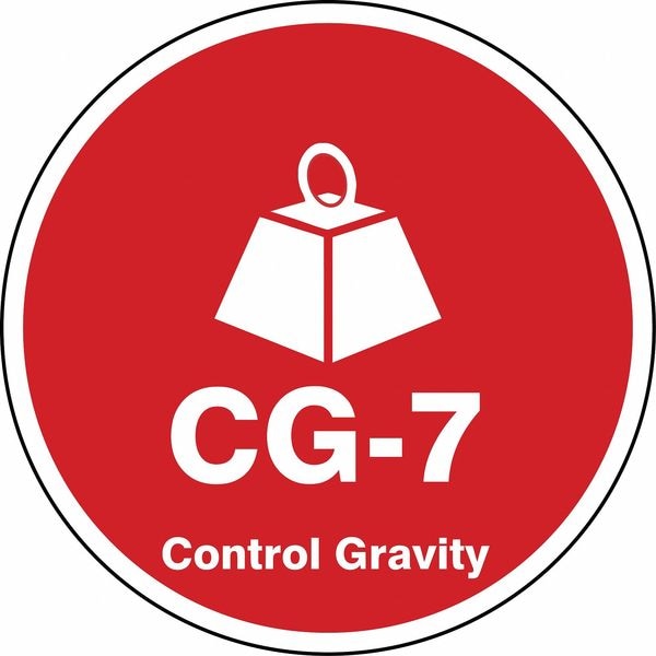 Energy Source ID Tag, Material Vinyl, Legend CG-7 Control Gravity, Height 2-1/2 In., Width 2-1/2 In., Header No Header, Legend Color White, Background Color Red, Legend Style Symbol and Text, Write on Surface No
