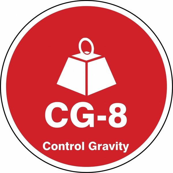 Energy Source ID Tag, Material Vinyl, Legend CG-8 Control Gravity, Height 2-1/2 In., Width 2-1/2 In., Header No Header, Legend Color White, Background Color Red, Legend Style Symbol and Text, Write on Surface No