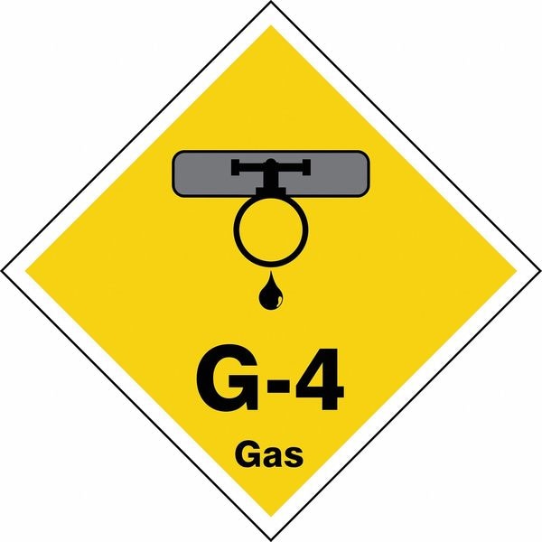 Energy Source ID Tag, Material Vinyl, Legend G-4 Gas, Height 2-1/2 In., Width 2-1/2 In., Header No Header, Legend Color Black, Background Color Yellow, Legend Style Symbol and Text, Write on Surface No