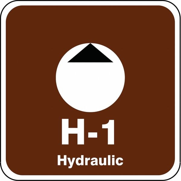 Energy Source ID Tag, Material Vinyl, Legend H-1 Hydraulic, Height 2-1/2 In., Width 2-1/2 In., Header No Header, Legend Color White, Background Color Brown, Legend Style Symbol and Text, Write on Surface No