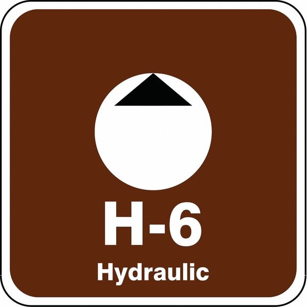 Energy Source ID Tag, Material Vinyl, Legend H-6 Hydraulic, Height 2-1/2 In., Width 2-1/2 In., Header No Header, Legend Color White, Background Color Brown, Legend Style Symbol and Text, Write on Surface No