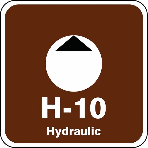 Energy Source ID Tag, Material Vinyl, Legend H-10 Hydraulic, Height 2-1/2 In., Width 2-1/2 In., Header No Header, Legend Color White, Background Color Brown, Legend Style Symbol and Text, Write on Surface No