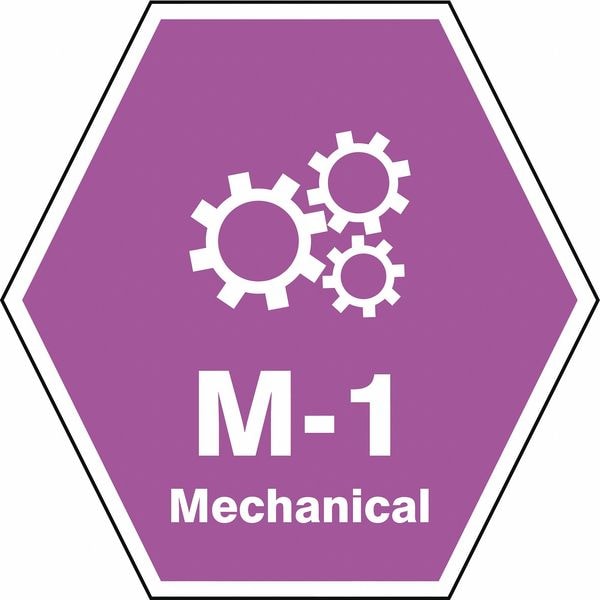 Energy Source ID Tag, Material Vinyl, Legend M-1 Mechanical, Height 2-1/2 In., Width 2-1/2 In., Header No Header, Legend Color White, Background Color Purple, Legend Style Symbol and Text, Write on Surface No