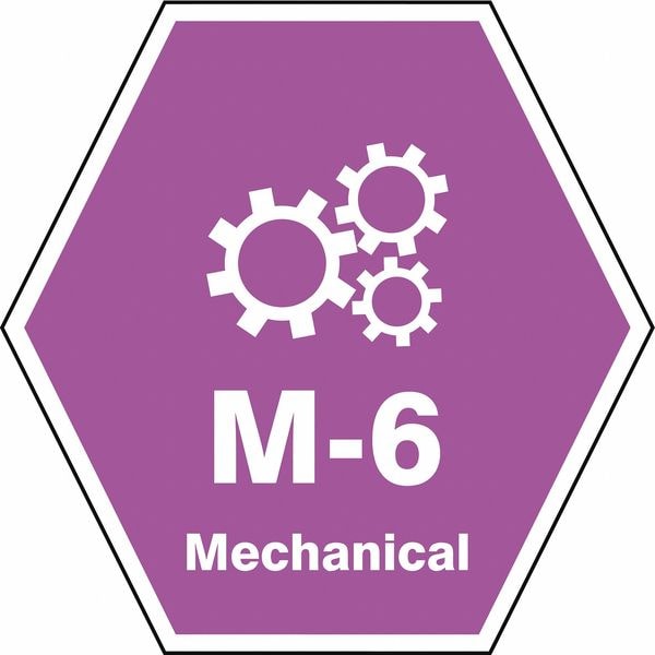 Energy Source ID Tag, Material Vinyl, Legend M-6 Mechanical, Height 2-1/2 In., Width 2-1/2 In., Header No Header, Legend Color White, Background Color Purple, Legend Style Symbol and Text, Write on Surface No