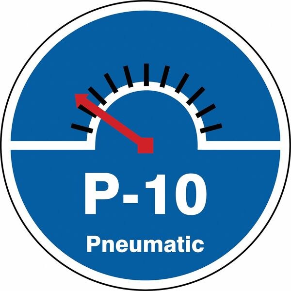 Energy Source ID Tag, Material Vinyl, Legend P-10 Pneumatic, Height 2-1/2 In., Width 2-1/2 In., Header No Header, Legend Color White, Background Color Blue, Legend Style Symbol and Text, Write on Surface No