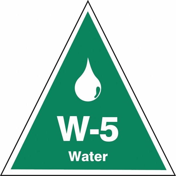 Energy Source ID Tag, Material Vinyl, Legend W-5 Water, Height 2-1/2 In., Width 2-1/2 In., Header No Header, Legend Color White, Background Color Green, Legend Style Symbol and Text, Write on Surface No