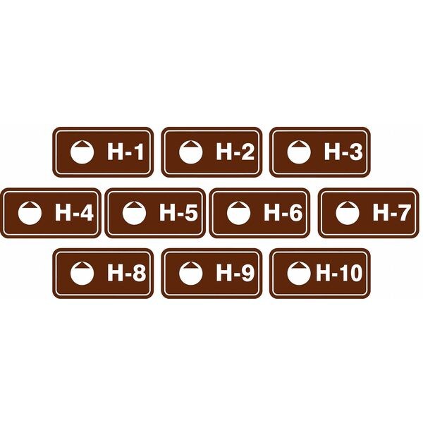 Energy Source ID Tag, Material Vinyl, Legend H-(1 to 10), Height 1-1/2 In., Width 3 In., Header No Header, Legend Color White, Background Color Brown, Legend Style Symbol and Text, Write on Surface No, Package Quantity 10