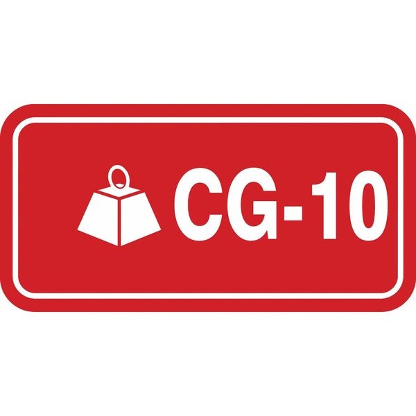 Energy Source ID Tag, Material Vinyl, Legend CG-10, Height 1-1/2 In., Width 3 In., Header No Header, Legend Color White, Background Color Red, Legend Style Symbol and Text, Write on Surface No