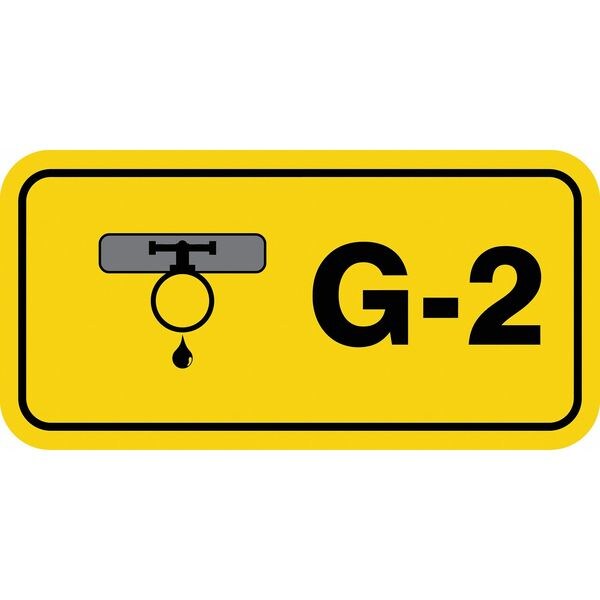 Energy Source ID Tag, Material Vinyl, Legend G-2, Height 1-1/2 In., Width 3 In., Header No Header, Legend Color Black, Background Color Yellow, Legend Style Symbol and Text, Write on Surface No