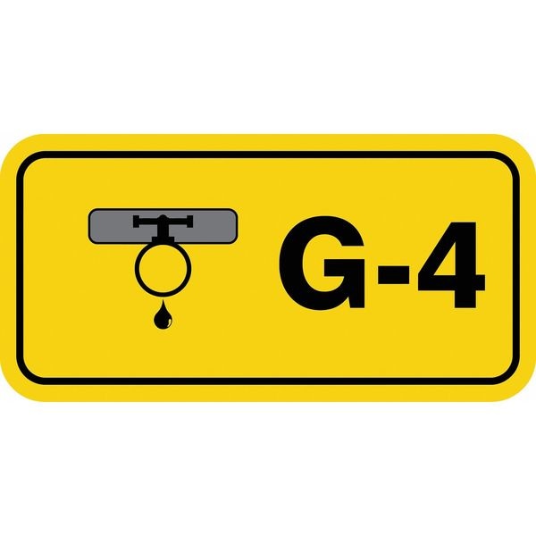 Energy Source ID Tag, Material Vinyl, Legend G-4, Height 1-1/2 In., Width 3 In., Header No Header, Legend Color Black, Background Color Yellow, Legend Style Symbol and Text, Write on Surface No
