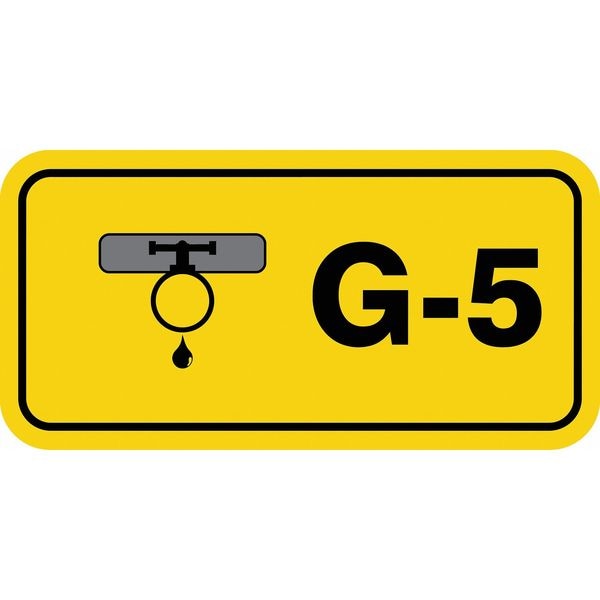 Energy Source ID Tag, Material Vinyl, Legend G-5, Height 1-1/2 In., Width 3 In., Header No Header, Legend Color Black, Background Color Yellow, Legend Style Symbol and Text, Write on Surface No