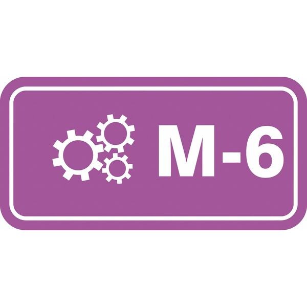 Energy Source ID Tag, Material Vinyl, Legend M-6, Height 1-1/2 In., Width 3 In., Header No Header, Legend Color White, Background Color Purple, Legend Style Symbol and Text, Write on Surface No