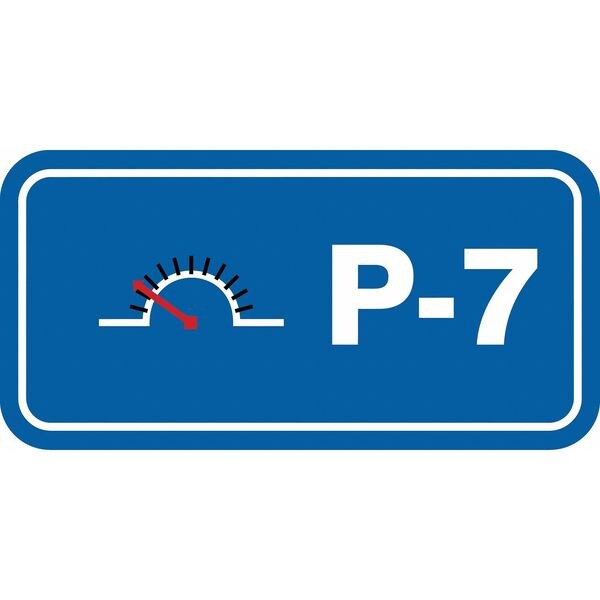Energy Source ID Tag, Material Vinyl, Legend P-7, Height 1-1/2 In., Width 3 In., Header No Header, Legend Color White, Background Color Blue, Legend Style Symbol and Text, Write on Surface No