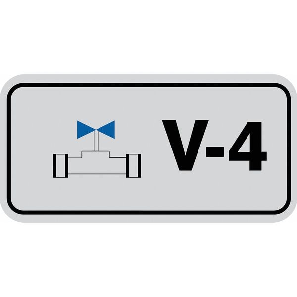 Energy Source ID Tag, Material Vinyl, Legend V-4, Height 1-1/2 In., Width 3 In., Header No Header, Legend Color Black, Background Color Gray, Legend Style Symbol and Text, Write on Surface No