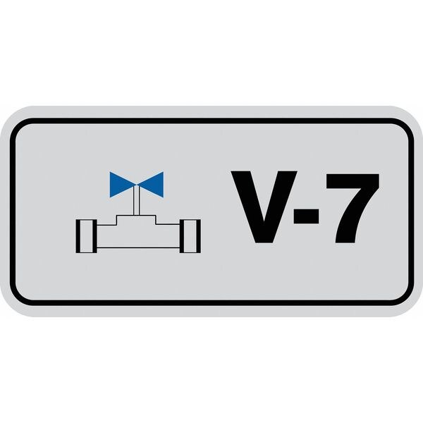 Energy Source ID Tag, Material Vinyl, Legend V-7, Height 1-1/2 In., Width 3 In., Header No Header, Legend Color Black, Background Color Gray, Legend Style Symbol and Text, Write on Surface No