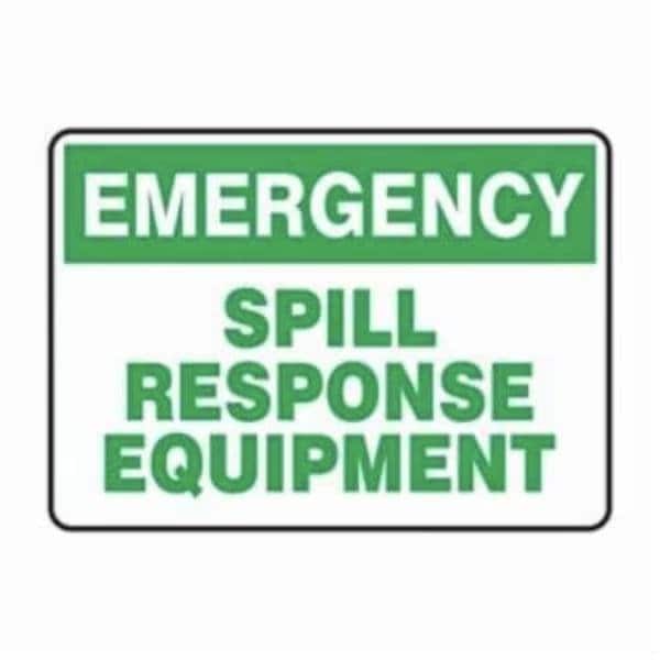 Accuform Emergency Exit Sign, Legend EMERGENCY SPILL RESPONSE EQUIPMENT, 6 mil Adhesive DuraVinyl, 10 in Height, 14 in WidthSafety Signs identify and indicate potential, type, and degree of hazards that may lead to accidental injury or property damage Duallayered Adhesive DuraVinyl delivers exceptional flexibility and performance, outperforming standard vinyl Printed image is protected by a highgloss UV protective coating Adhesive DuraVinyl is durable, even in the toughest indoor and outdoor conditions, and adheres to most smooth, curved, and irregular surfaces