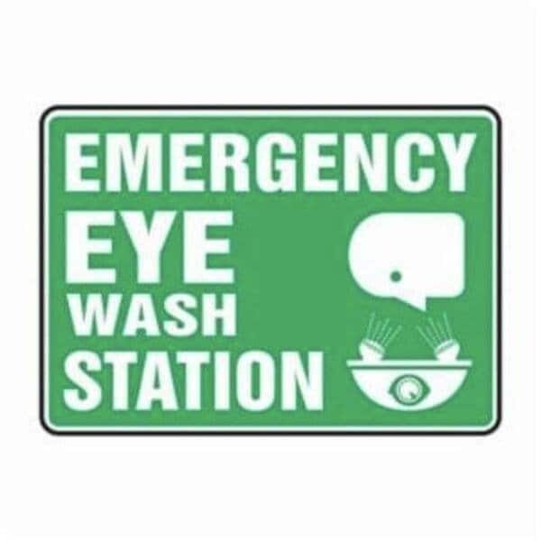 Accuform Emergency Exit Sign, Legend EMERGENCY EYE WASH STATION WGRAPHIC, 6 mil Adhesive DuraVinyl, 10 in Height, 14 in WidthSafety Signs identify and indicate potential, type, and degree of hazards that may lead to accidental injury or property damage Duallayered Adhesive DuraVinyl delivers exceptional flexibility and performance, outperforming standard vinyl Printed image is protected by a highgloss UV protective coating Adhesive DuraVinyl is durable, even in the toughest indoor and outdoor conditions, and adheres to most smooth, curved, and irregular surfaces