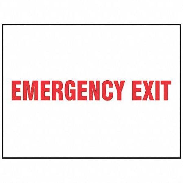 Emergency Exit Sign, Sign Subject Matter Exit and Entrance, Height 7 In., Width 10 In., Sign Material Aluminum, Sign Mounting Style With Mounting Holes, Header No Header, Legend Emergency Exit, Printed Language English, Sign Shape Rectangle