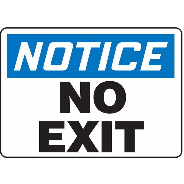 Notice Sign, Sign Subject Matter Exit and Entrance, Height 7 In., Width 10 In., Sign Material Aluminum, Sign Mounting Style With Mounting Holes, Header Notice, Legend No Exit, Printed Language English, Sign Shape Rectangle