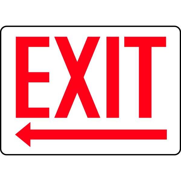 Exit Sign, Sign Subject Matter Exit and Entrance, Height 10 In., Width 14 In., Sign Material Aluminum, Sign Mounting Style With Mounting Holes, Header No Header, Legend Exit (Arrow Left), Printed Language English, Sign Shape Rectangle