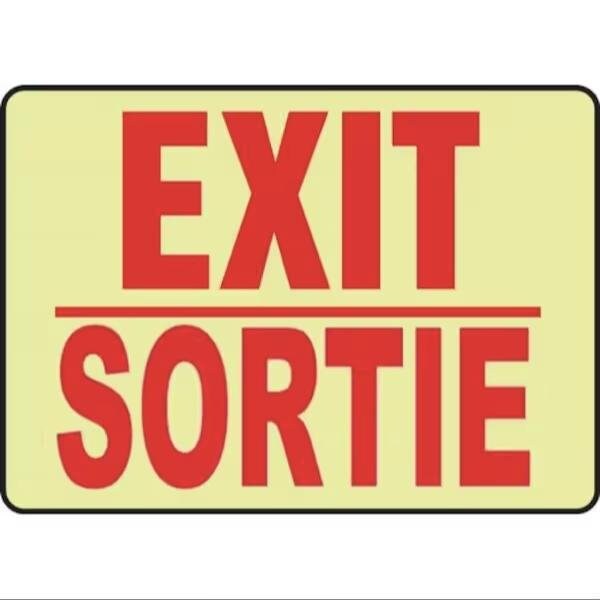 Exit Sign, Glow Plastic, 10 in W, 7 in H