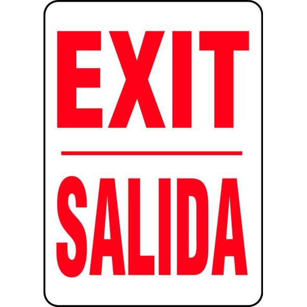 Spanish-Bilingual Exit Sign, Sign Subject Matter Exit and Entrance, Height 14 In., Width 10 In., Sign Material Plastic, Sign Mounting Style With Mounting Holes, Header No Header, Legend Exit/Salida, Printed Language English, Spanish, Sign Shape Rectangle