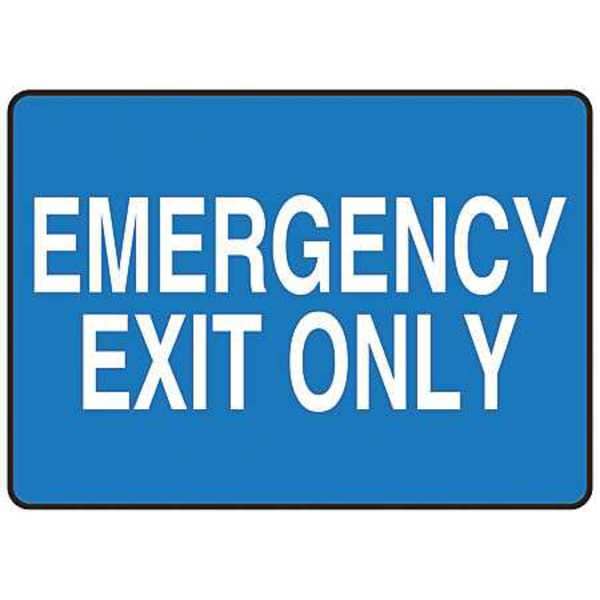 Exit Sign, Plastic, 10" W, 7" H, Emergency Exit Only, Blue
