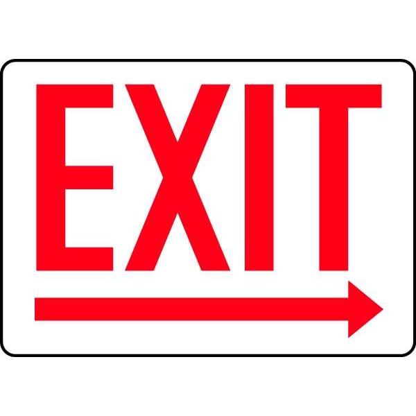 Exit Sign, Sign Subject Matter Exit and Entrance, Height 10 In., Width 14 In., Sign Material Plastic, Sign Mounting Style With Mounting Holes, Header No Header, Legend Exit (Arrow Right), Printed Language English, Sign Shape Rectangle