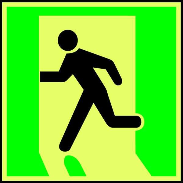 IMO (International Maritime Organization) Safety Sign, Sign Subject Matter Exit and Entrance, Height 6 In., Width 6 In., Sign Material Polyester, Sign Mounting Style Adhesive Surface, Header No Header, Legend Pictogram Only, Printed Language No Text, Sign Shape Square