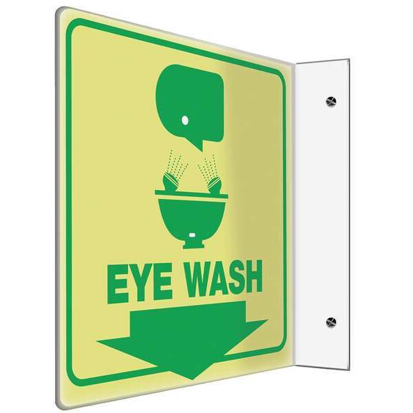 L-Shape Projection Sign, Sign Subject Matter Eyewash and Shower, Height 8 In., Width 8 In., Sign Material Plastic, Sign Mounting Style With Mounting Holes, L-Shaped, Header No Header, Legend Eye Wash, Printed Language English, Sign Shape L-Shaped