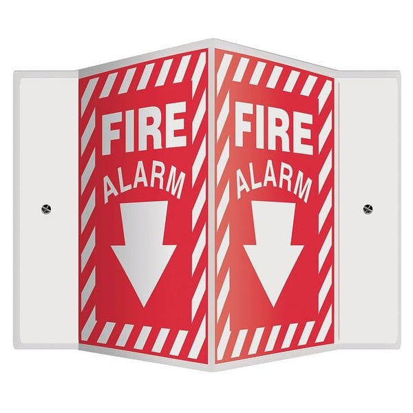 Fire Alarm Sign, Sign Subject Matter Fire Equipment, Height 12 in, Width 14 in, Sign Material Plastic, Sign Mounting Style With Mounting Holes, V-Shaped, Header No Header, Legend Fire Alarm, Printed Language English, Sign Shape V-Shaped