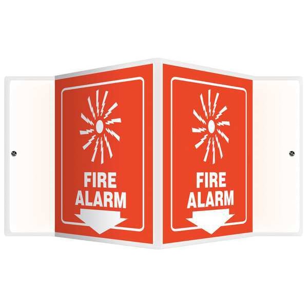 Fire Alarm Sign, Sign Subject Matter Fire Equipment, Height 6 in, Width 8 1/2 in, Sign Material Plastic, Sign Mounting Style With Mounting Holes, V-Shaped, Header No Header, Legend Fire Alarm, Printed Language English, Sign Shape V-Shaped