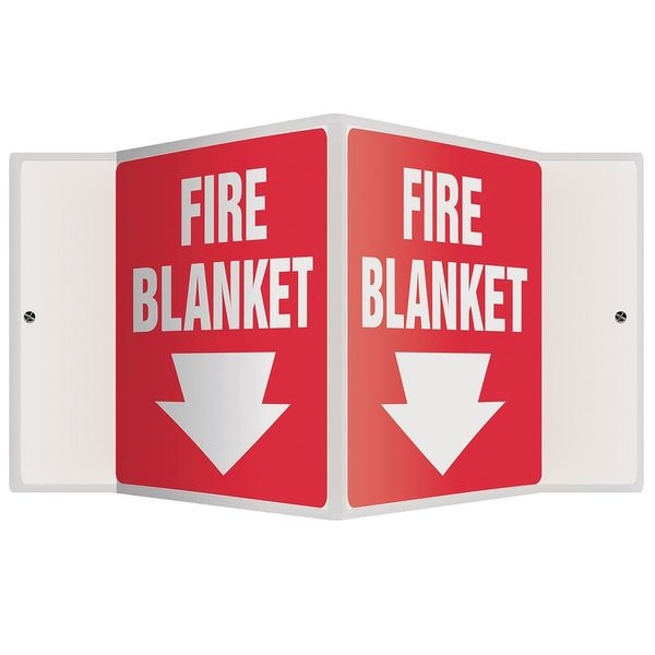 Fire Blanket Sign, Sign Subject Matter Fire Equipment, Height 6 in, Width 8 1/2 in, Sign Material Plastic, Sign Mounting Style With Mounting Holes, V-Shaped, Header No Header, Legend Fire Blanket, Printed Language English, Sign Shape V-Shaped