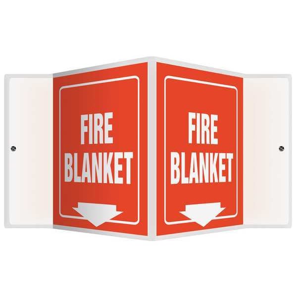 Fire Blanket Sign, Sign Subject Matter Fire Equipment, Height 6 in, Width 8 1/2 in, Sign Material Plastic, Sign Mounting Style With Mounting Holes, V-Shaped, Header No Header, Legend Fire Blanket, Printed Language English, Sign Shape V-Shaped