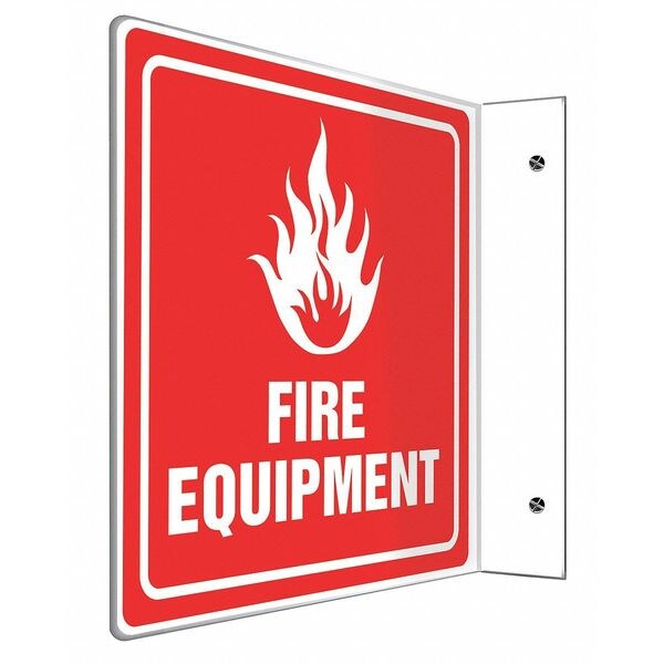 Fire Equipment Sign, Sign Subject Matter Fire Equipment, Height 8 in, Width 8 in, Sign Material Plastic, Sign Mounting Style With Mounting Holes, L-Shaped, Header No Header, Legend Fire Equipment, Printed Language English, Sign Shape L-Shaped